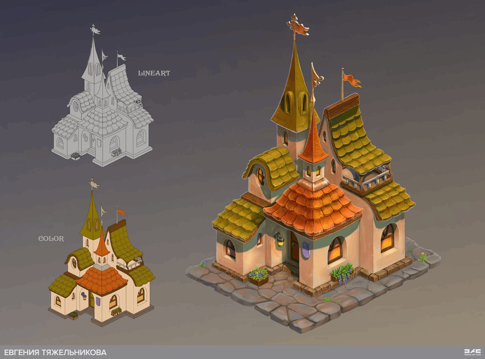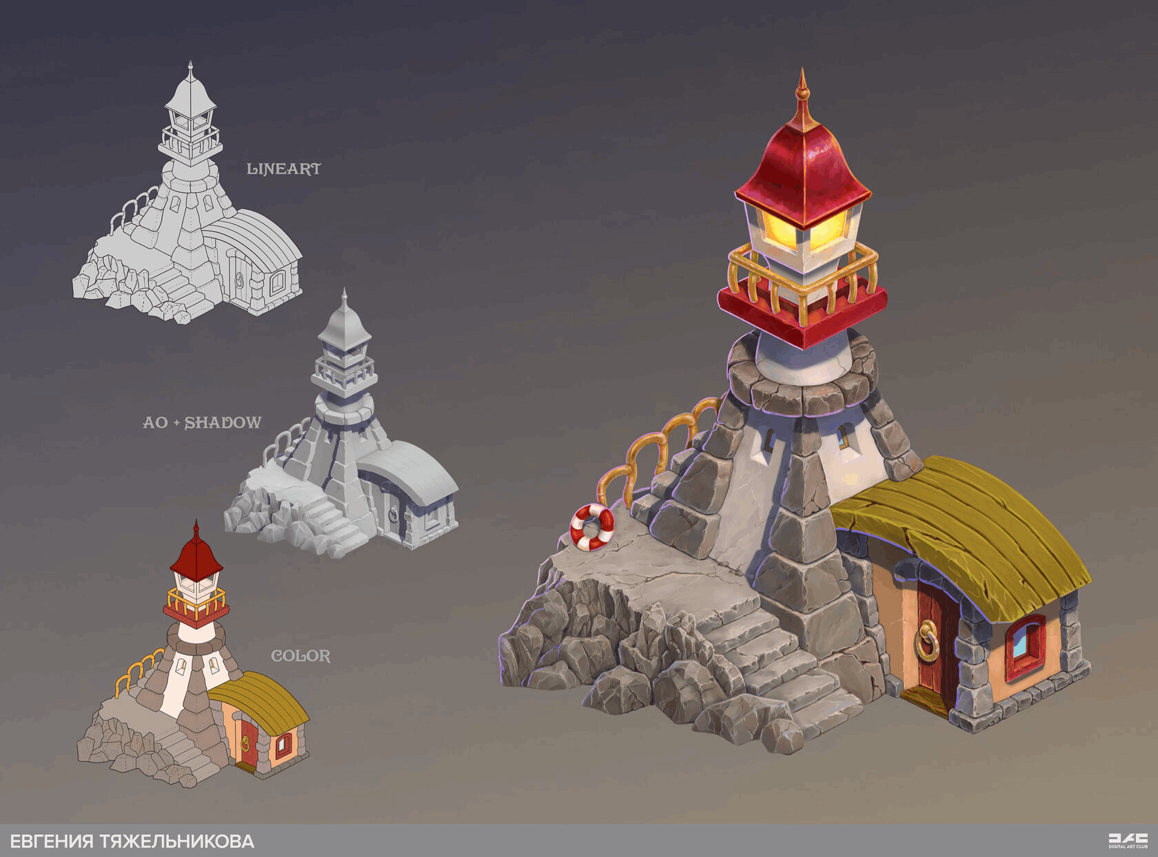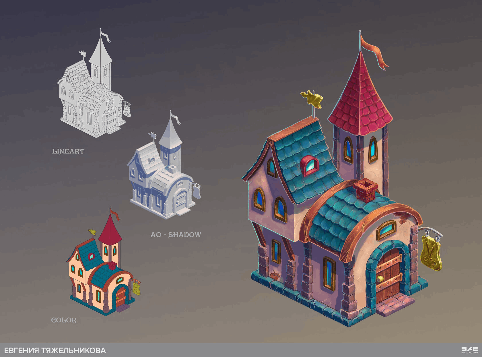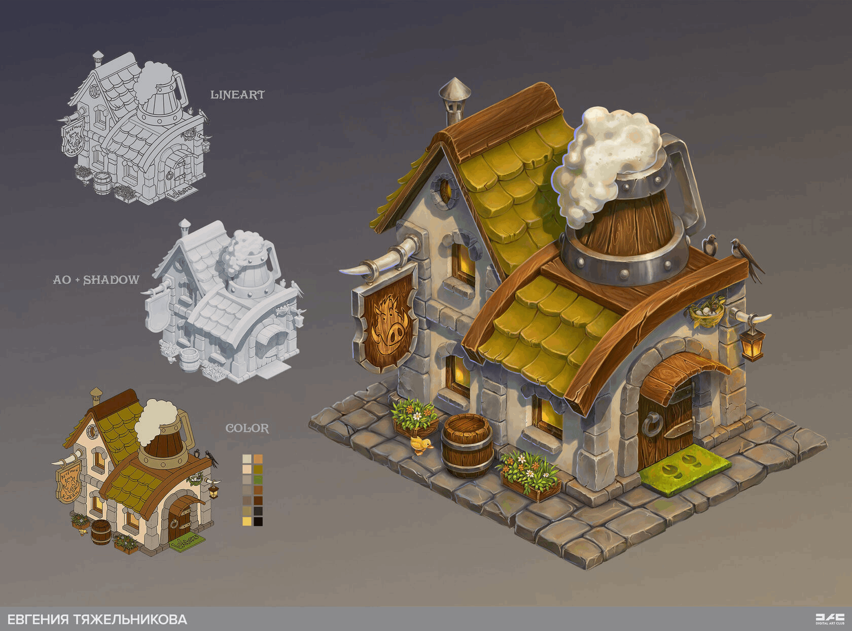 — Перспектива и объём — Композиция — Объем, освещение — Цвет — Фактура материалов и финализация