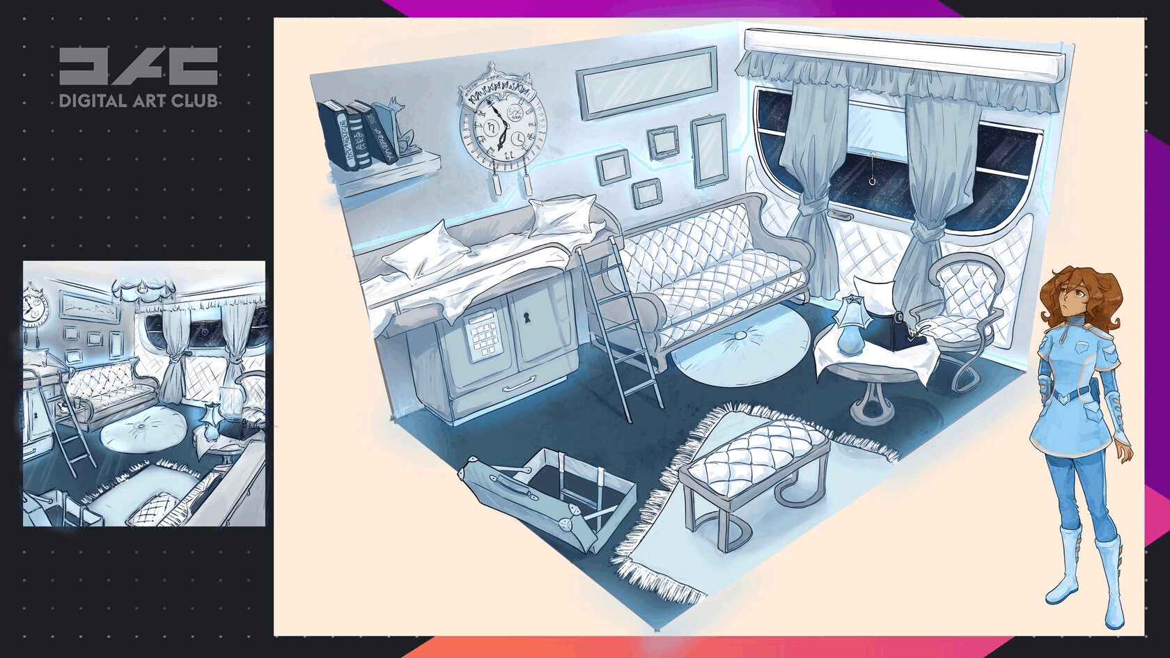 Привет! Я училась на курсе цифровой живописи пару лет назад! Долго выбирала и курс и школу, и остановилась на Dac! Очень понравилось обучение и подачей и возможностью выбора рисунка и уже готовой подборкой. Я бы рекомендовала эту школу желающим научиться рисовать.